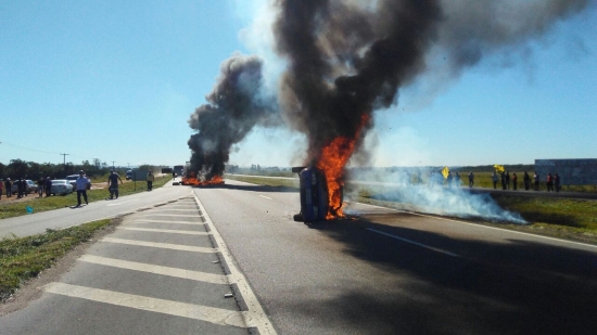 A BR-101 no Sul do Estado, que já havia sido paralisada nesta sexta-feira em Sombrio, voltou a ter o trânsito bloqueado. Desta vez o fluxo foi interrompido em Içara, no quilômetro 377 da rodovia. De acordo com as informações repassadas pela Polícia Rodoviária, o ato tem ligação com a manifestação da Greve Geral, que ocorre em todo o país. Pilhas de pneus e um carro foram incendiados sobre a pista para bloquear o trânsito. Um pouco mais a frente também há concentração de mineiros tomando os dois sentidos da pista.