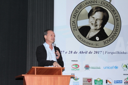 Sucesso absoluto. Esta é a conclusão ao final da quarta edição do Seminário Nacional de Políticas Públicas para a Primeira Infância – Um Tributo a Zilda Arns, realizado nesta quinta e sexta-feira, em Forquilhinha. O evento já tem data para 2018: 24 e 25 de abril com a presença de uma das maiores autoridades em infância do mundo: Vanderlino Nogueira, comissário de infância da Organização das Nações Unidas (ONU). “Além dele, temos outras personalidades confirmadas, assim como entidades como Unicef, Plan International, Rede Não Bata Eduque, Pastoral da Criança Fundação Abrinq, entre outras”, comemora a presidente do Conselho Municipal dos Direitos da Criança e do Adolescente (CMDCA) de Forquilhinha, Lilian Arns, entidade organizadora do evento. “Estamos extremamente satisfeitos. O debate foi riquíssimo em todos os momentos e tivemos a presença de pessoas do Rio de Janeiro, São Paulo, Goiás, Rio Grande do Sul, Distrito Federal e claro, Santa Catarina”, acrescenta. As inscrições deste ano precisaram ser encerradas antes do final, por falta de espaço.