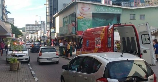 A vítima, de 24 anos, sofreu escoriações na perna e foi socorrida pelo Corpo de Bombeiros. Ela foi encaminhada ao Hospital São José.