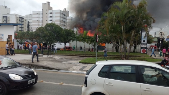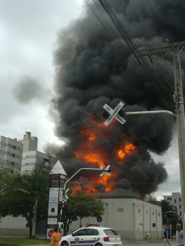 Um incêndio de grandes proporções ocorre neste momento na rua Procópio Lima, no Centro de Içara. Bombeiros de Içara estão no local atuando no combate as chamas. Guarnições de Criciúma e de outros municípios da região já foram acionadas para auxiliar no combate.