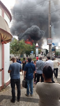A Polícia Militar também está no local e interrompeu a passagem de veículos e pedestres em volta do incêndio. Segundo informações preliminares, as chamas se concentram no depósito de uma empresa. Muitos populares observam o trabalho dos bombeiros no local.