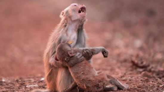 Um fotógrafo registrou, em uma imagem tocante, o momento em que uma macaca parece chorar ao abraçar um filhote que ficou inconsciente, em Jabalphur, na Índia. O clique, compartilhado por Avinash Lodhi em seu perfil em uma rede social, está comovendo internautas de diferentes países.