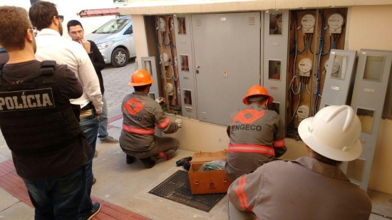Araranguá- Na manhã da última terça-feira, dia 16, equipes da Celesc juntamente com policiais civis da 1ª Delegacia de Polícia de Araranguá coordenados pelo delegado Vandilson Moreira da Silva e policiais civis da Central de Plantão Policial comandados pelo delegado Marlon Bosse, se deslocaram até o Residencial Bela Vista, no bairro Coloninha em Araranguá, pois segundo informações, a Celesc havia recebido a denúncia de que no local havia aproximadamente 20 “gatos” de energia elétrica. Peritos do Instituto Geral de Perícia (IGP) também acompanharam essa fiscalização, pois se caso fosse comprovado o furto de energia, teria que ser feita uma perícia no local.