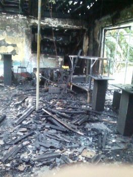 Uma casa noturna localizada às margens da BR 101, no bairro Barranca foi consumida pelas chamas na madrugada desta terça-feira (15). Uma pessoa que trafegava pelo antigo traçado da Rodovia Federal percebeu as chamas e acionou o socorro por volta da 01h10min. Não havia ninguém no interior do estabelecimento no momento do sinistro. O Corpo de Bombeiros ao chegar iniciou o combate utilizando 4 mil litros de água no combate às chamas e rescaldo. Segundo informações, 80% da boate foi destruída pelo incêndio. Uma pericia será feita no local, pois suspeita-se de incêndio criminoso. A proprietária descreve como lamentável a situação.
