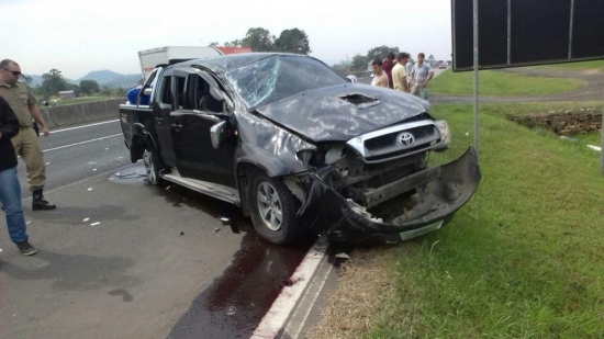 Camioneta carregada de vinho capota na BR 101 em Santa Rosa