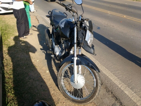 Acidente próximo ao pórtico deixa motoqueiro ferido