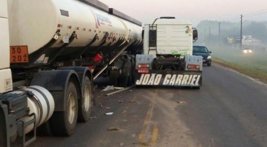 Uma colisão lateral entre dois caminhões, foi registrada na manhã desta sexta-feira, na Rodovia Estadual SC 285, verificou se tratar de colisão lateral entre uma carreta tanque (transporte de diesel, que estava vazia) com placas de Turvo e um caminhão Mercedez Benz.