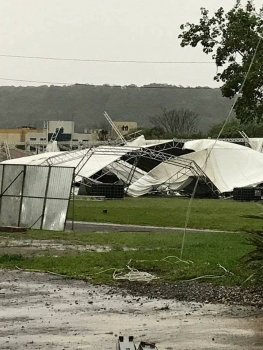 Um temporal atingiu o estado do Rio Grande do Sul neste fim de tarde de domingo causando grandes estragos. Com rajadas de vento que chegaram a 100 km por hora e chuva intensa, o temporal deixou alguns municípios sem energia, aproximadamente 700 casas destelhadas, além de postes e árvores no chão. Houve registro de raios e queda de granizo.