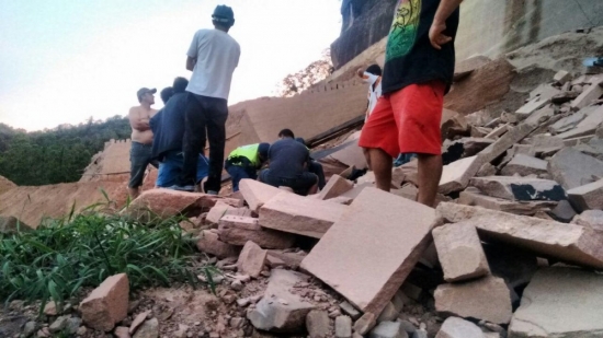 A vítima ficou parcialmente soterrada e com auxílio de outros funcionários do local, as pedras que estavam em cima, foram removidas. Quando os socorristas do Corpo de Bombeiros chegaram no local, a vítima estava consciente, levemente confusa, sinais vitais alterados, traumatismo crânio encefálico, suspeita de fratura em nariz, suspeita de fratura em membro superior esquerdo, suspeita de fratura de tórax e suspeita de hemorragia interna.