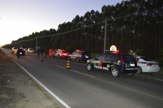 A Polícia Militar foi acionada por volta das 04h40min, sobre disparos de arma de fogo ocorridos na marginal da SC 447, em frente ao Centro de Eventos, onde um casal estaria alvejado. O autor dos crimes fugiu em uma EcoSport de cor prata, modelo antigo.
