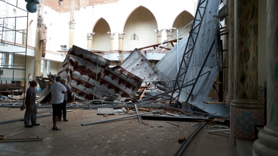 Parte do teto da Igreja Matriz de Praia Grande desaba