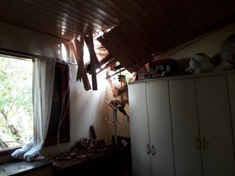 Vento forte ou tornado danificou casas e prédios publicos em Nova Veneza