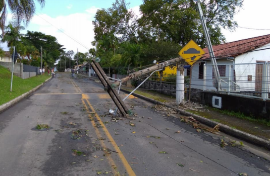 Nova Veneza- Como se não bastasse o granizo forte no interior do município esta semana, onde causou muito prejuízo aos agricultores. No final da tarde de hoje um vento muito forte que ainda não deu de precisar se foi tornado ou não, mas que causou muito estrago nas residências, na rede de energia elétrica onde em torno de 30 residências estão sem energia devido a postes que cairam. Duas casas foram atingidas por arvores e o corpo de bombeiros trabalha no local. As atividades do Cras, segundo a assessora Cris Freitas estão suspensas pois o telhado foi danificado. O vento forte ainda atingiu a garagem da prefeitura, uma escola e outros bens públicos. O prefeito Rogério Frigo decretou situação de emergência.