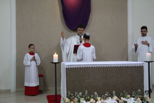 Já neste domingo, 4, aconteceu às 10h00, missa presidida pelo Padre Alírio Leandro, Pároco. Na oportunidade os casais festeiros da comunidade de 2018, Rosemary Antunes Corrêa Maciel e Agnaldo Antônio Maciel e Ana Beatriz Corrêa Bertoncini e Otávio Bertoncini Neto, apresentaram os festeiros para a 1ª festa e romaria no Santuário Diocesano Nossa Senhora Mãe dos Homens. Logo depois, aconteceu o almoço festivo.