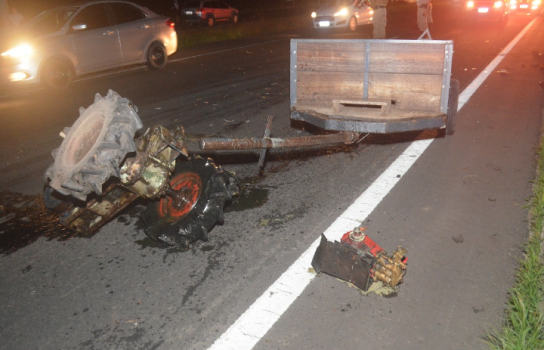 Por volta das 19h40min desta segunda-feira, dia 02, um grave acidente de trânsito envolvendo um Ford Ká, uma motoneta Shineray e uma Tobata (máquina agrícola) foi registrado na BR 101, na localidade de Morro do Português, em Santa Rosa do Sul.