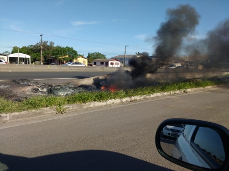Em Araranguá caminhoneiros também estão parados, e fumaça é registrada nas margens da BR 101.