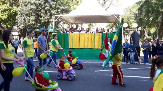A movimentação neste 7 de Setembro ocorreu na Rua Rui Barbosa, tendo seu ponto inicial no Centro Municipal de Cultura Antônio Bez Batti / Museu Histórico Lourenço Manenti. O palanque oficial com as autoridades municipais ficou no jardim da Igreja Matriz.