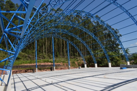 Jacinto Machado - O sonho de uma quadra poliesportiva coberta na Escola Municipal de Educação Básica Albino Zanatta, localizada no bairro Gávea, em jacinto Machado, já está próximo de ser realizado. As obras, que iniciaram em junho, já mostram como vai ficar a quadra depois de concluída. A obra conta com recursos do Governo Federal, através de emenda parlamentar do ex-deputado Edinho Bez, no valor de R$ 487.778,67.