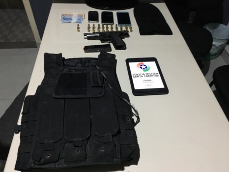 Durante as buscas e varreduras, os militares encontraram e apreenderam uma pistola .40 de uso restrito com carregador com 10 munições, uma meia contendo mais 10 munições de .40, uma touca balaclava, capa de colete balístico, duas munições de pistola .9mm, dinheiro, celulares entre outros objetos.