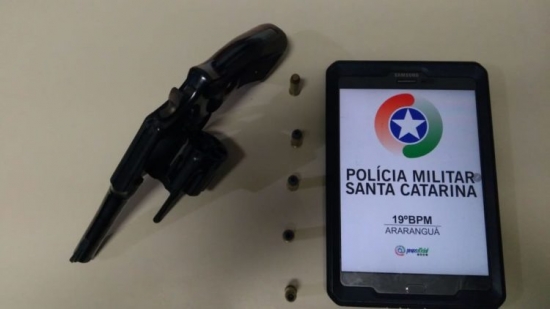 O revólver calibre .38, com 5 munições intactas foi apreendido e entregue na delegacia. A mulher disse que a arma era de seu marido e o mesmo confirmou o fato, sendo ele preso e autuado em flagrante, aguardando pela audiência de custódia, os demais foram ouvidos e liberados