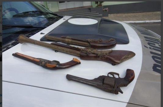 Na parede de um dos quartos, policias apreenderam quatro armas de coleção, sendo dois revólveres e duas espingardas, sem condições de uso, porém não havia o registro na Polícia Federal (PF).