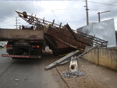Por volta das 14 horas desta quinta-feira (17), um caminhão placa IFM 0634 de São João do Sul carregado de ferro velho bateu em um poste, e o mesmo caiu. O acidente aconteceu na Rua Leoberto Leal no centro de Turvo,