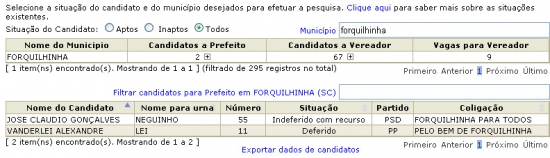 Em contrapartida, a coligação “ Forquilhinha para todos”, encabeçada por José Cláudio Gonçalves, o Neguinho continua na mesma situação, ele ainda aguarda o deferimento do TRE, porém continua a campanha eleitoral.