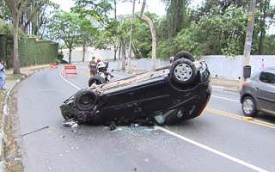 Carro capota e jovem é arremessada