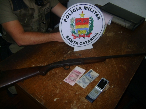 Preso em flagrante pela Policia Militar da cidade de Araranguá nesta quarta-feira (9), por volta das 22h10min no Bairro Divinéia, J.L.G, 39 anos. Ele foi preso em flagrante por posse de uma espingarda calibre 32, sem registro.