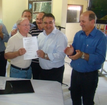 O governador Raimundo Colombo, o secretário de Estado da Infraestrutura, Valdir Cobalchini e o secretário do Desenvolvimento Regional de Araranguá, Heriberto Afonso Schmidt, entregaram na última quinta-feira (17), a ordem de serviço para a restauração de 5,5 quilômetros da rodovia que liga o município de Passo de Torres à BR-101, no Sul do Estado. A obra integra o Pacto por Santa Catarina. O investimento soma R$ 2,8 milhões, financiados pelo Banco Interamericano de Desenvolvimento - BID. A obra inicia em até 30 dias e o prazo para conclusão é de aproximadamente um ano.