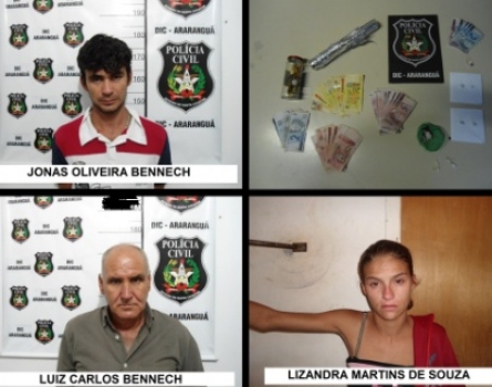 Presos no fim da tarde desta quarta-feira (10), Luiz Carlos Benech, 59 anos, natural de Bom Jesus (RS) e o filho Jonas de Oliveira Benech, 24 anos, natural de Três Cachoeiras (RS) e Lizandra Martins de Souza, 21 anos, natural de Criciúma. Todos foram presos acusados de tráfico de drogas.