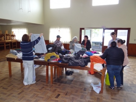 As donas Célia Mariot e Letícia Sehnem, separam as roupas doadas para cada família que necessita, afirmam que o que mais se precisa são roupas infantis. Além disso a Casa Paroquial recebe doações o ano todo, e já tem destino certo para cada peça. Na paróquia de Forquilhinha as comunidades que receberam os donativos foram: Santa Cruz, São Defende e Cidade Alta.
