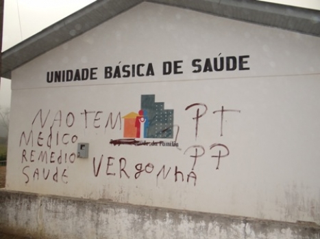 Posto de saúde amanhece pichado com protestos