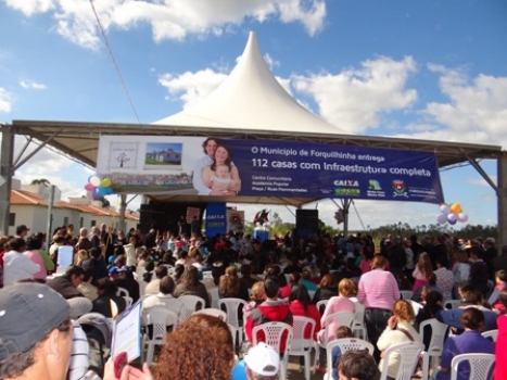 Na abertura do evento o grupo de hip hop do CRAS animou os convidados. Em seguida a cerimônia foi iniciada com a participação das famílias, as principais protagonistas da história, além de convidados como os deputados Jorge Boeira, Doia Guglielmi e Altair Guidi, representantes da Caixa Econômica Federal, o Secretário Nacional de Acessibilidade e Programas Urbanos do Ministério das Cidades Leodegar Tiscoski, entre outros.