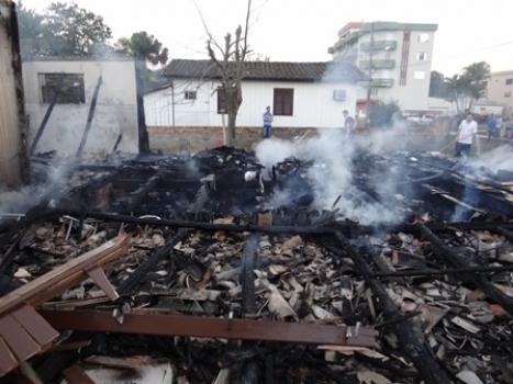 Nova Veneza - Uma casa mista localizada na Rua Henrique Dal Sasso, no Centro de Nova Veneza, teve toda a estrutura de madeira consumida por um incêndio na tarde desta quinta-feira (1). Não havia ninguém em casa na hora do incidente e a ocorrência foi atendida pelo Corpo de Bombeiros de Forquilhinha.