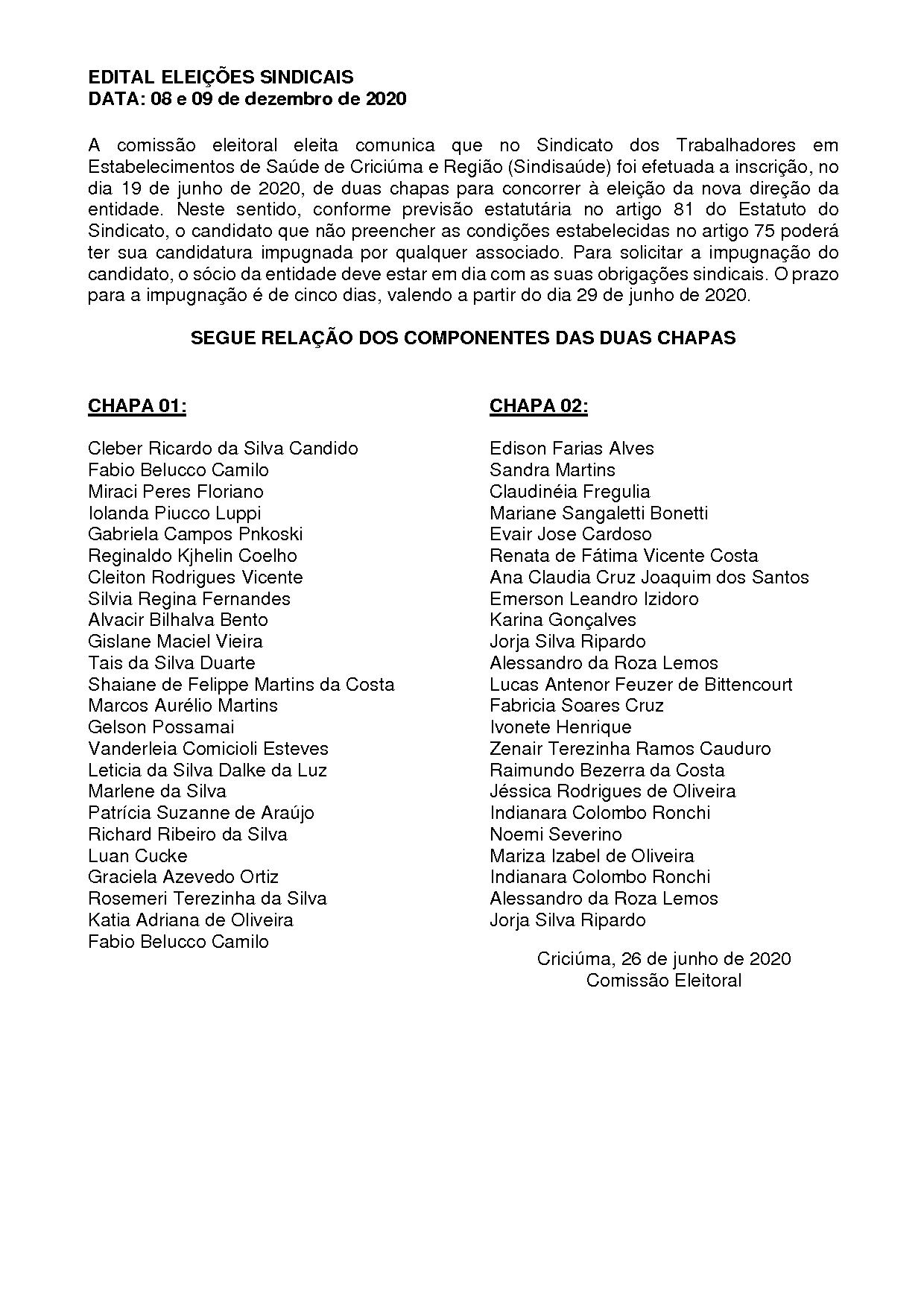 EDITAL ELEIÇÕES SINDICAIS