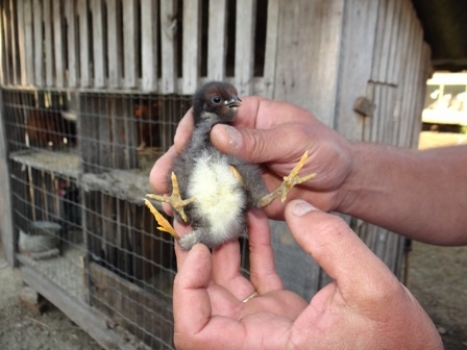 Alguns frangos de seu Tarciano são da espécie gigante, e de outras raças diferentes. Algumas aves adquiridas na propriedade do seu Nico Serafim, também de Turvo, no qual o Volta Grande já escreveu reportagem mostrando as aves exóticas que ele criava. “Eu nunca tinha visto uma ave nascer assim, pra mim é coisa rara. O pintinho se alimenta normal, e se apóia somente em dois pezinhos, deixando um deles bem grudado no corpo, e o outro suspenso no ar. Outro fato de animal que nasceu anormal aqui na região que eu me lembre, foi um bezerro de duas cabeças, que meu pai ajudou a fazer o parto, na comunidade de Ponte Alta, há muitos anos atrás”, disse Tarciano.