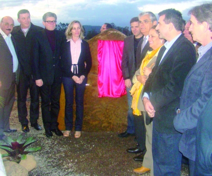 Turvo – O governador em exercício Eduardo Pinho Moreira e o prefeito de Turvo, Ronaldo Carlessi inauguraram na tarde desta segunda-feira (16), a pavimentação asfáltica da rodovia municipal Prefeito Romeu Calessi. O descerramento da placa inaugural foi realizado no início do trecho pavimentado, na localidade de Linha Contessi. Em seguida, a comitiva seguiu para um evento no Centro Comunitário de Morro Chato, distrito beneficiado pela obra de 8,5 quilometros, que faz a ligação com a SC-285.