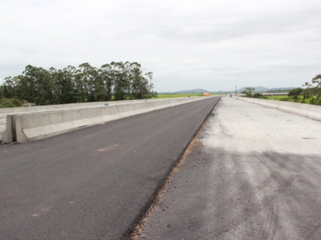 A ponte sobre o rio Araranguá está finalizada. Assim, o contorno viário está ligado à rodovia federal e une as pistas ao elevado construído sobre o banhado de Maracajá. O último trabalho a ser finalizado é a aplicação do asfalto, serviço que será feito nos próximos dias. Com 185,4 metros de extensão, a ponte formada por duas pistas, com quatro faixas de rolagem, vai abrigar o tráfego de veículos de sentido Norte-Sul e Sul-Norte. Hoje, a estrutura sobre o rio Araranguá, pertencente ao traçado antigo, tem trânsito em mão dupla. Por ser via de velocidade elevada, a nova ponte sobre o rio Araranguá não terá espaço para pedestres, somente acostamento. A estrutura foi construída no KM 411 da BR-101, passando também sobre a rodovia SC-447, que liga Balneário Arroio do Silva a Meleiro