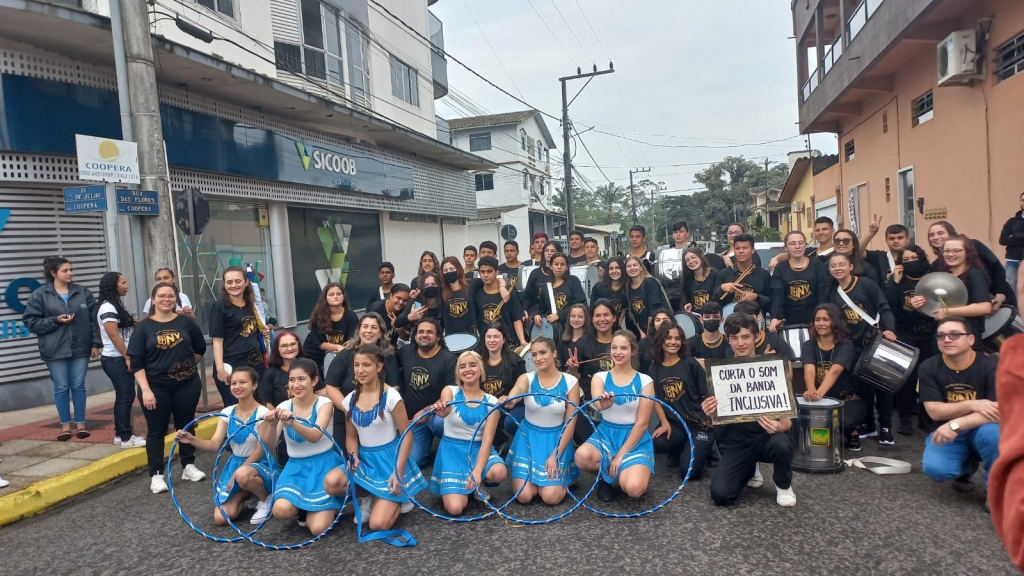 A fanfarra da escola é formada por 40 alunos, sendo sete deles com necessidades especiais. Chamada de ‘Banda Inclusiva’, a fanfarra levou para o desfile o som da inclusão, acompanhada da professora regente da banda Kelly Karitiana Moro Scussel e também professora de Educação Especial do Estado.