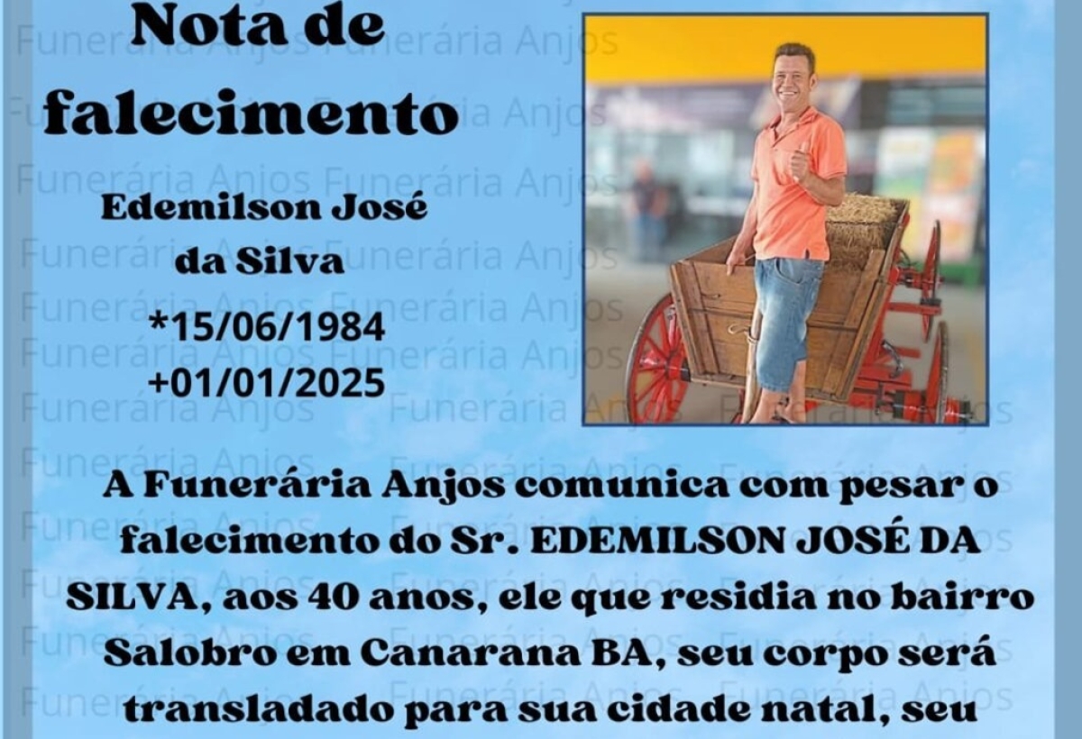 Meleiro- Edemilson José da Silva de 40 anos, natural de Canarana, na Bahia, que atualmente residia em Meleiro onde estava a trabalho, morreu afogado dia 1º de janeiro no Rio Manoel Alves.