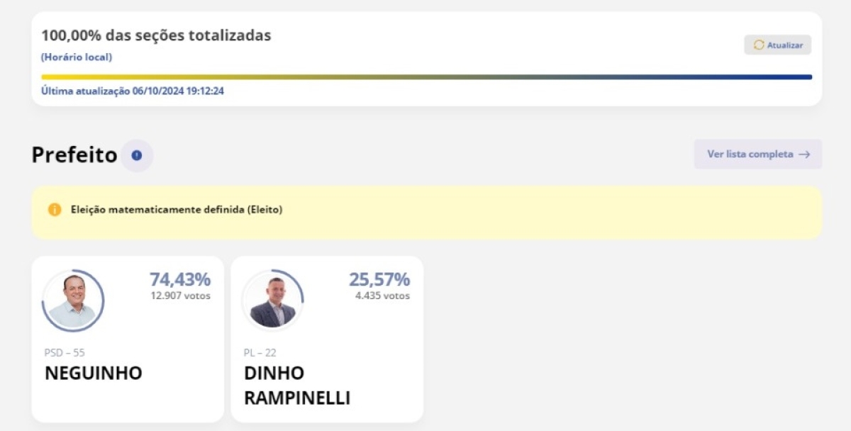 06/10/2024 19h21 - Atualizado em 06/10/2024 19h24