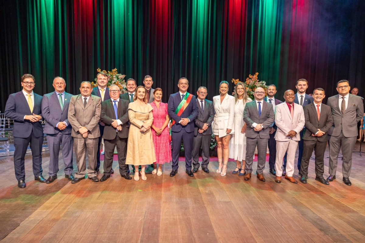 Os 17 vereadores eleitos para o mandato de 2025 a 2028, o prefeito Vagner Espíndola e o vice-prefeito Salesio Lima foram empossados na tarde desta quarta-feira, 1º de janeiro, em Sessão Solene realizada no Teatro Elias Angeloni, em Criciúma. A cerimônia reuniu autoridades, lideranças políticas e a comunidade, simbolizando o início de um novo ciclo administrativo para o município.