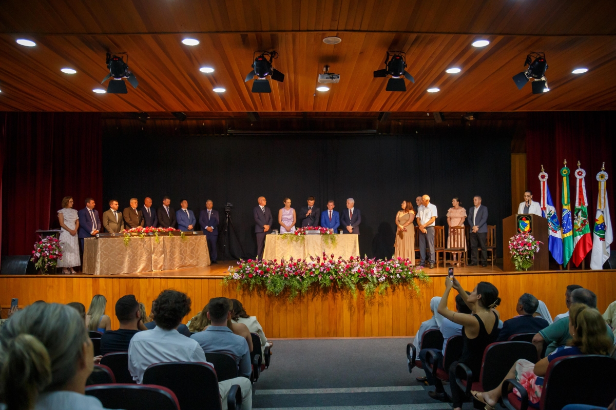 Na última quarta-feira, 1, Nova Veneza realizou a cerimônia de posse dos novos representantes do Executivo e do Legislativo municipal para a gestão 2025-2028. A Sessão Solene de Instalação e Posse, realizada no Teatro Municipal, marcou o início oficial dos trabalhos dos novos agentes políticos, incluindo a prefeita Ângela Mariana Panato Ghislandi de Melo, o vice-prefeito Edésio Spilere e os nove vereadores eleitos.