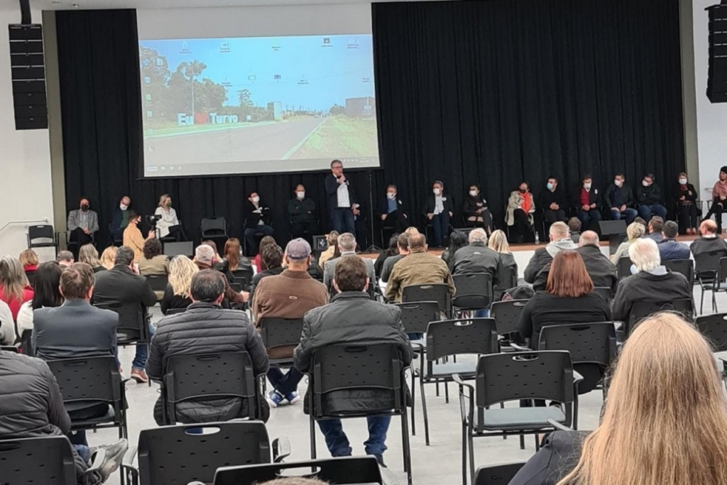 Nos discursos, logo na primeira fala, o prefeito João Batista Mezzari, o Gaiola, de Jacinto Machado, quebrou o protocolo e chamou o ex prefeito de Turvo para o palco, pedindo licença aos deputados estaduais presentes, agradecendo seus apoios, mas deixando claro a necessidade de um representante que seja da região.