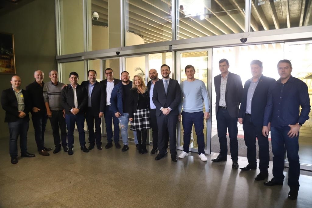 Na foto, estão o prefeito de Morro da Fumaça Noi Coral, o empresário Daniel, e o presidente da Câmara e ex-prefeito Evandro Gava, de Nova Veneza; o secretário de Assistência Social Duca Zata e o vereador Rodrigo Gonçalves, de Içara; Beth Tiscoski; o suplente de vereador Alexandre Caetano, de Siderópolis; os ex-vereadores de Forquilhinha Rangel Loch e Edesio Loch; e o vereador Guilherme Coan.