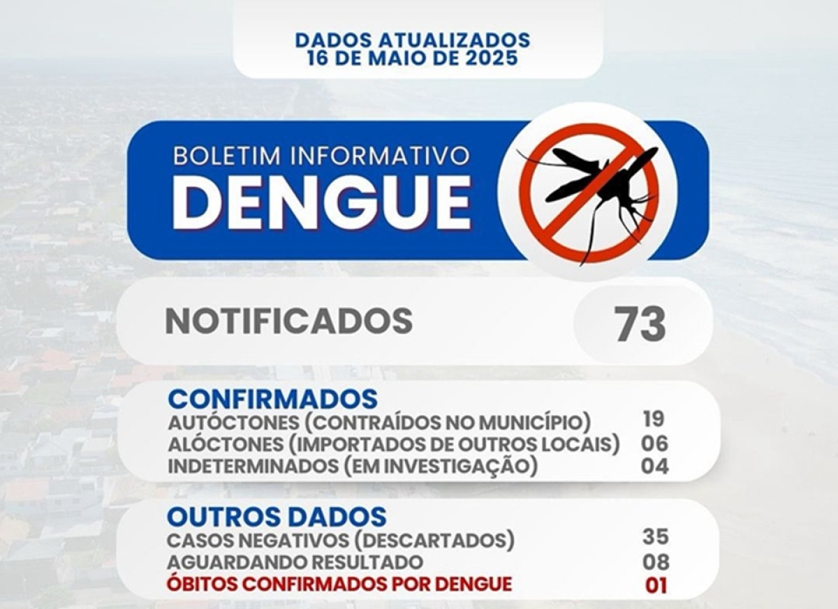 Segundo a prefeitura, o idoso que faleceu tinha mais de 60 anos e possuía comorbidades. Estão pedindo que devido ao aumento no número de casos autóctones no município de Balneário Gaivota é necessário e primordial o uso de repelente por toda a população. Reforce os cuidados: tire 10 minutos do seu tempo e cuide do seu pátio. Elimine criadouros do mosquito e proteja sua família.