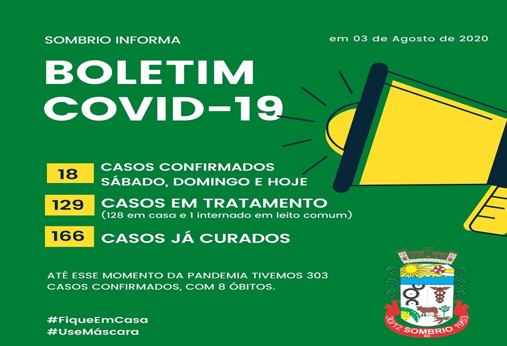 Foi confirmado na tarde desta segunda-feira, dia 03, pela Administração Municipal de Sombrio, mais 3 mortes de pacientes devido a Covid-19.