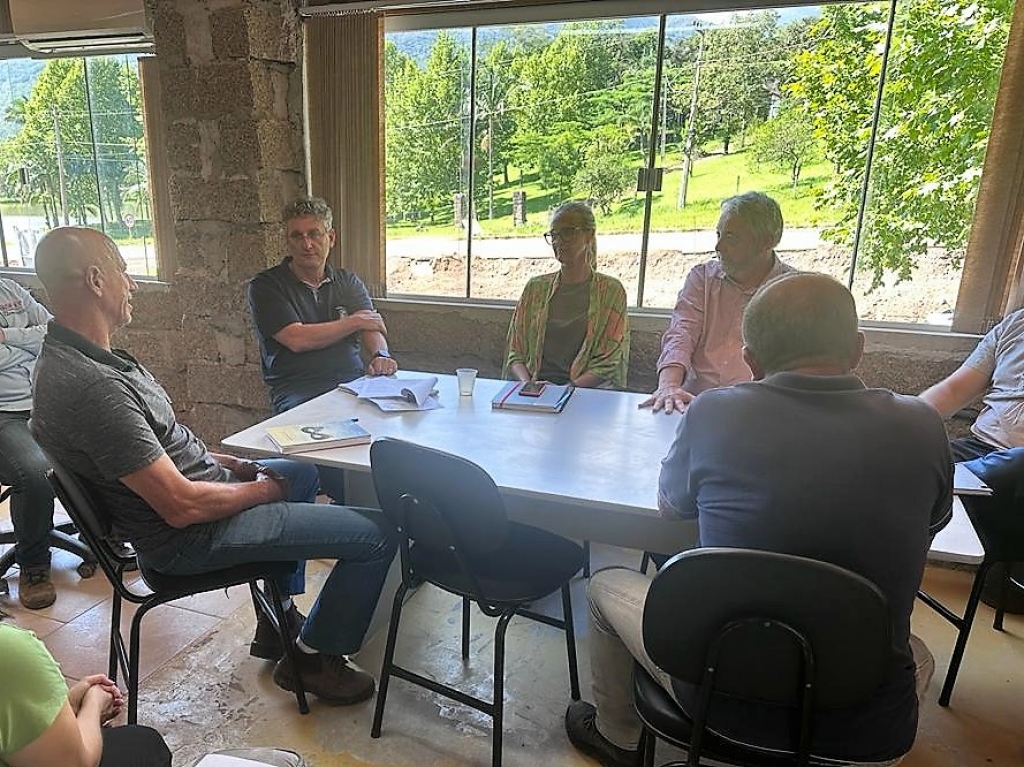 Timbé do Sul - Na manhã de quinta-feira (02) reuniram-se, na comunidade de Rocinha, o prefeito de Timbé do Sul, Roberto Biava, o fiscal da obra do DNIT, Névio Antonio Carvalho, engenheiro responsável Cezar Altissimo e profissionais da obra da BR 285, na sede da equipe.
