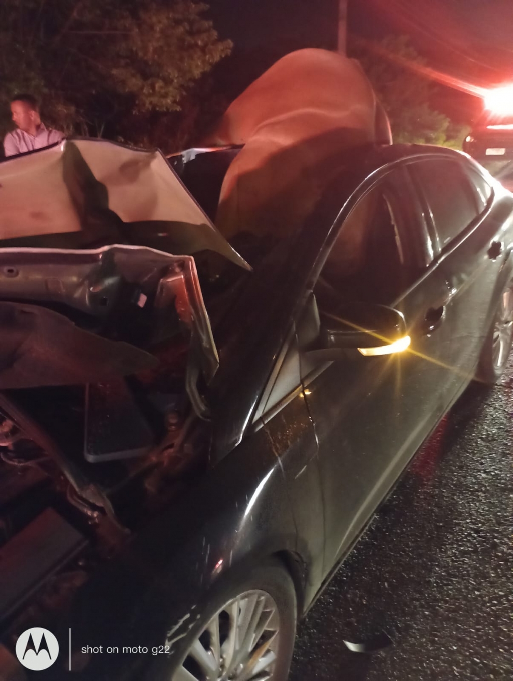 Motorista fica gravemente ferido e carro destruído após atropelar cavalo na Rodovia